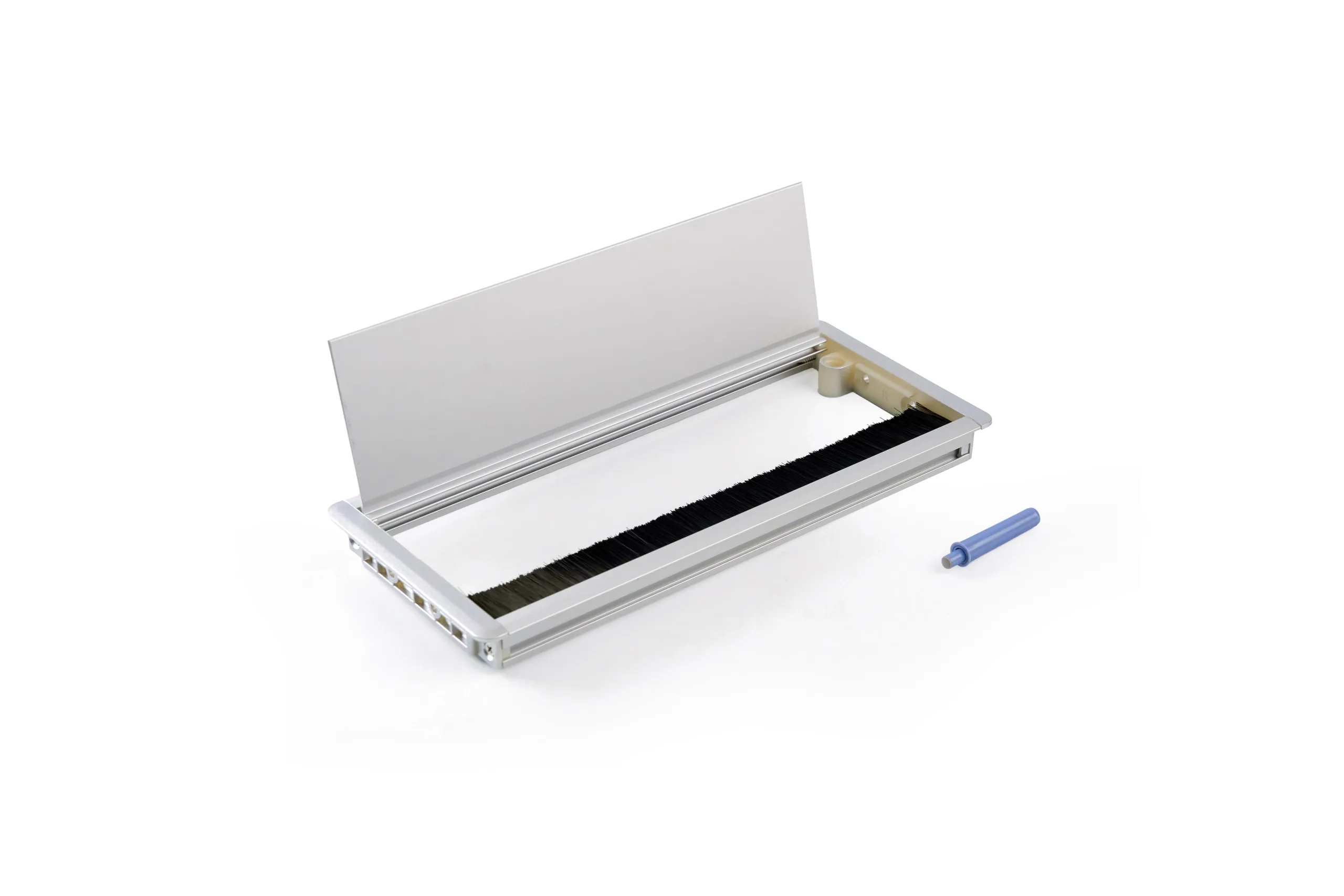 Diseñadas para la organización de cableado en estaciones de trabajo, escritorios operativos, puestos técnicos y mobiliario corporativo. Su sistema rebatible permite un acceso seguro y controlado del pasacables, mientras que el cepillo opcional mejora la organización y evita el ingreso de partículas.