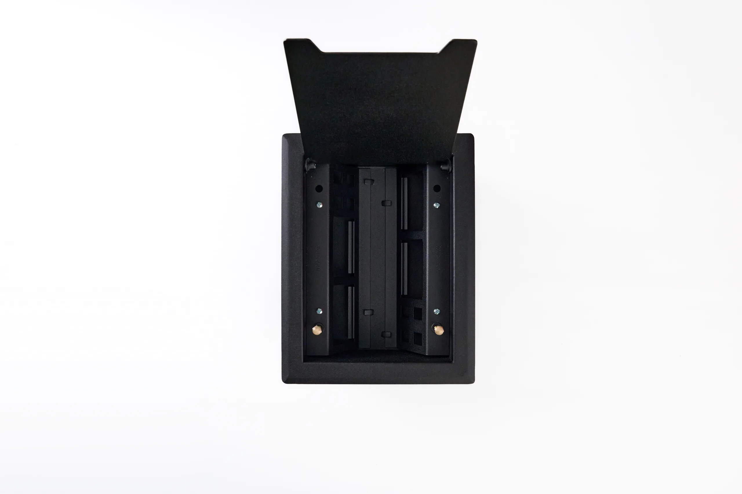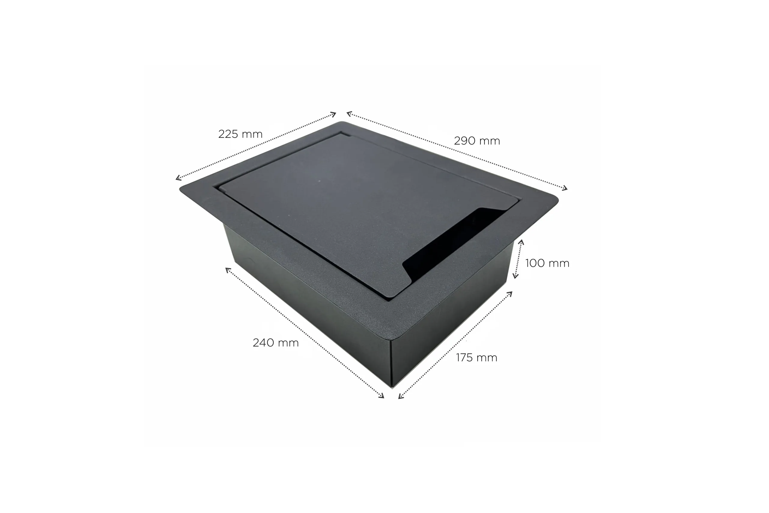 Diseñada para brindar una solución robusta y estética en instalaciones de piso técnico o piso ducto, permitiendo una integración segura de módulos eléctricos, de datos y multimedia. Fabricada completamente en chapa de acero, tanto la tapa como la base, ofrece alta resistencia mecánica y un acabado adaptable a cualquier entorno profesional.